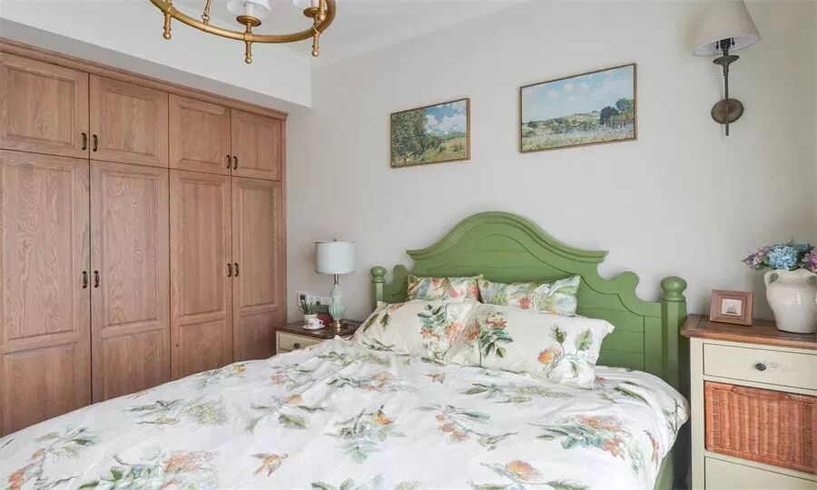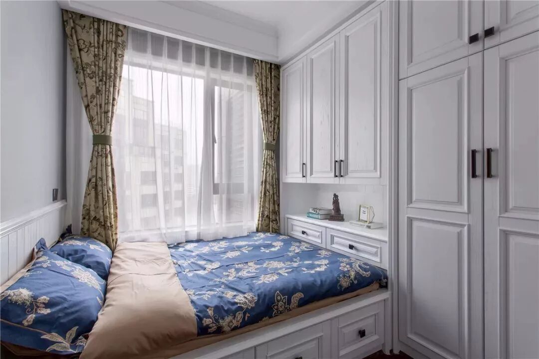 对于比较小的卧室而言,可能比较难以腾出摆放衣柜的位置,这个时候就可以把衣柜与床组合起来,在床头或床尾位置装个定制衣柜,这样可以达到非常巧妙的空间利用效果。