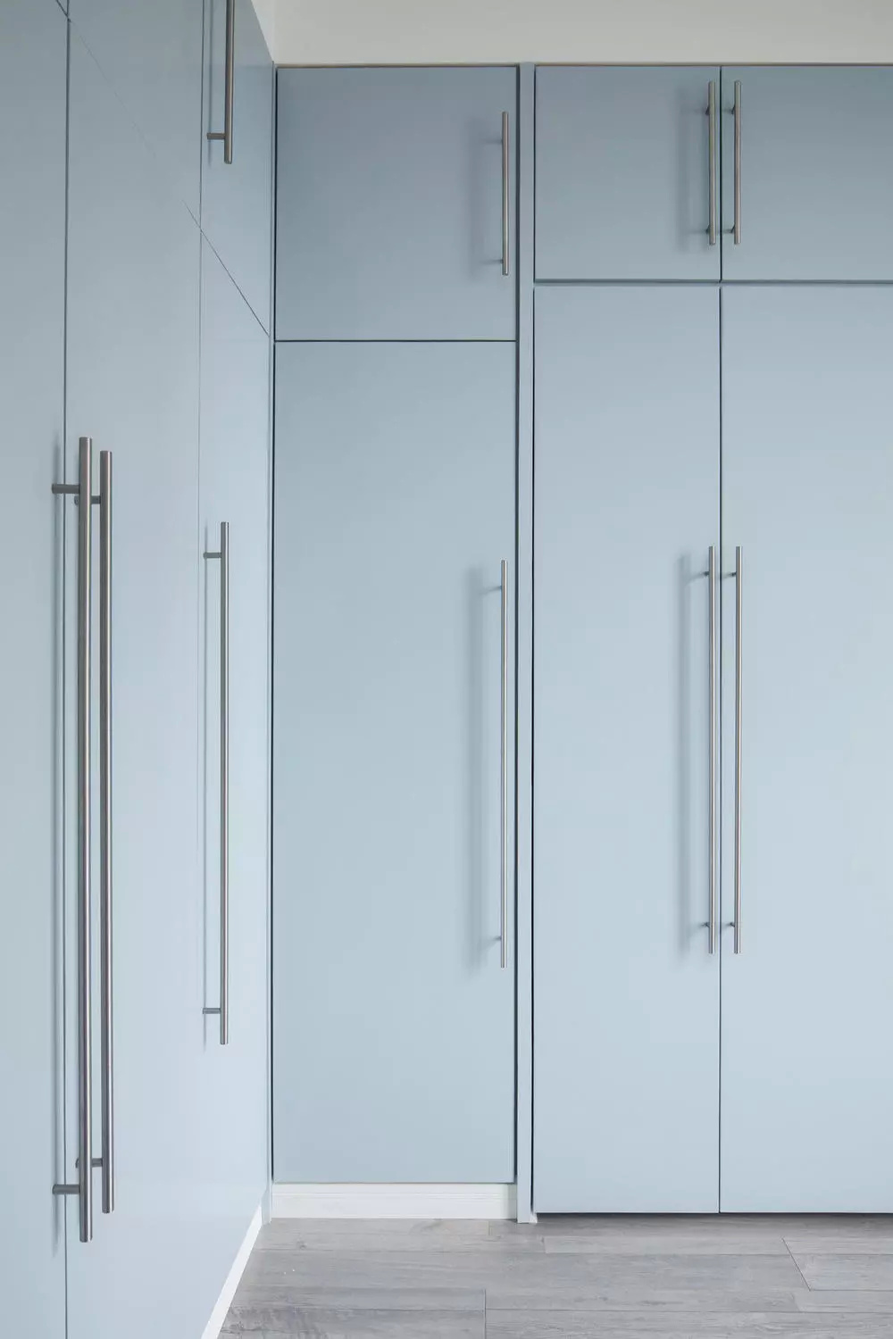 房间面积不大,既要储物又要可以兼顾客房,所以有了这样一个折叠床隐形在一整面储物柜里。