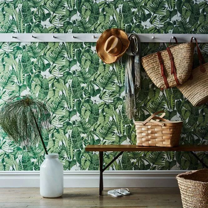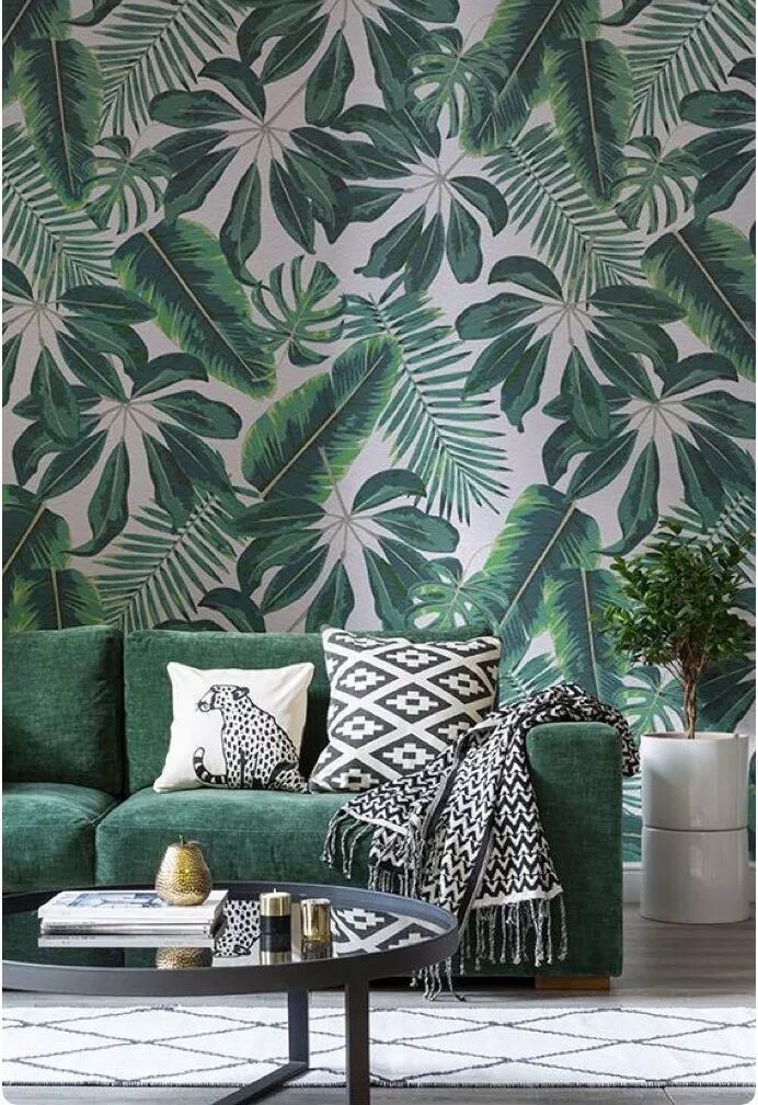 这几年非常流行用这种热带雨林系列,仿佛置身绿野仙踪,绿色叶子层层叠叠,让家居空生机焕然,人们的心境能得到放松和解压。