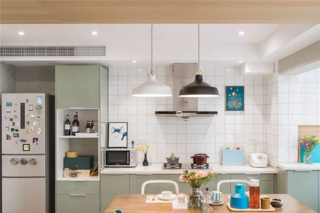 30、开放式餐厨的格局,厨房墙面同样是餐厅的墙面。