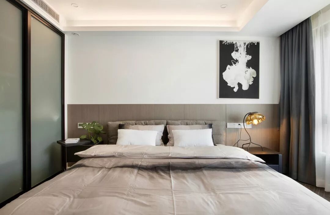 52、床头嵌入一层,给床尾腾点空间,加以木框封边让墙面的过渡更自然。