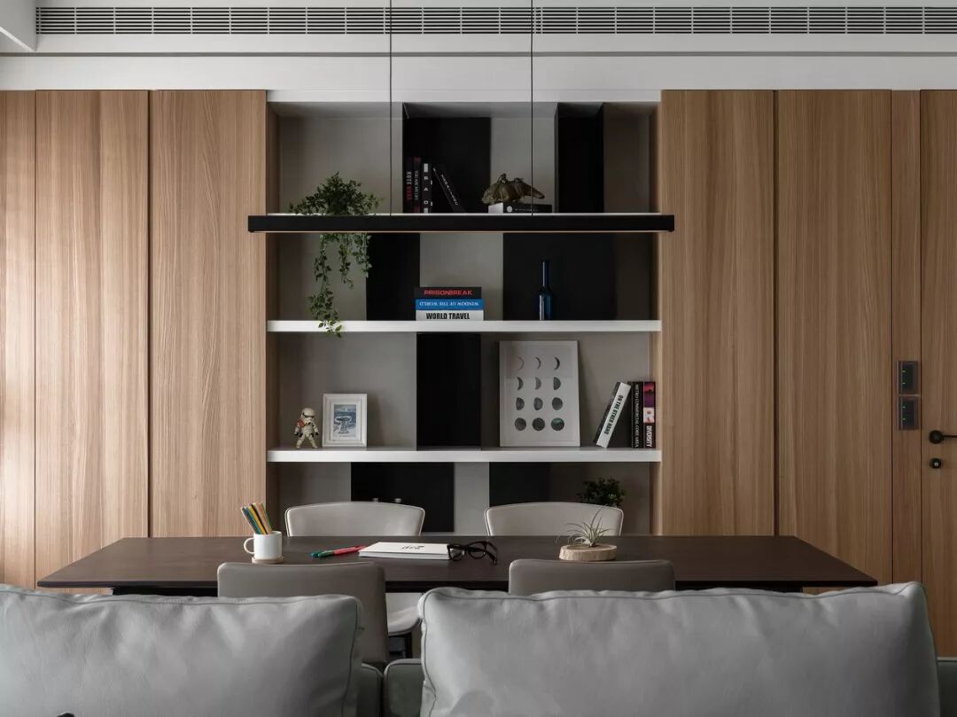 13、电视柜嵌入电视墙,腾出点空间营造更轻松的动线,显得雅致又端庄。