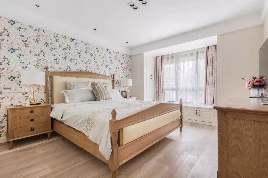 主卧,木色地面搭配无主灯简洁顶面,简单装饰却十分温馨舒适。