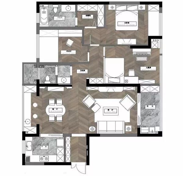 这套143平美式三居室,硬装以浅色为主,软装则多色彩浓厚鲜艳,深浅搭配,整个空间更显雅致贵气。房屋信息户型 三居室面积 143平米户型图▲ 平面布置图玄关玄关面积宽敞,屋主安装了一整面墙的组合衣柜,既能当鞋柜用,又能作为衣帽区,大面积的收纳非常实用。客厅过道左侧为餐厅,右侧为客厅,以装饰画布