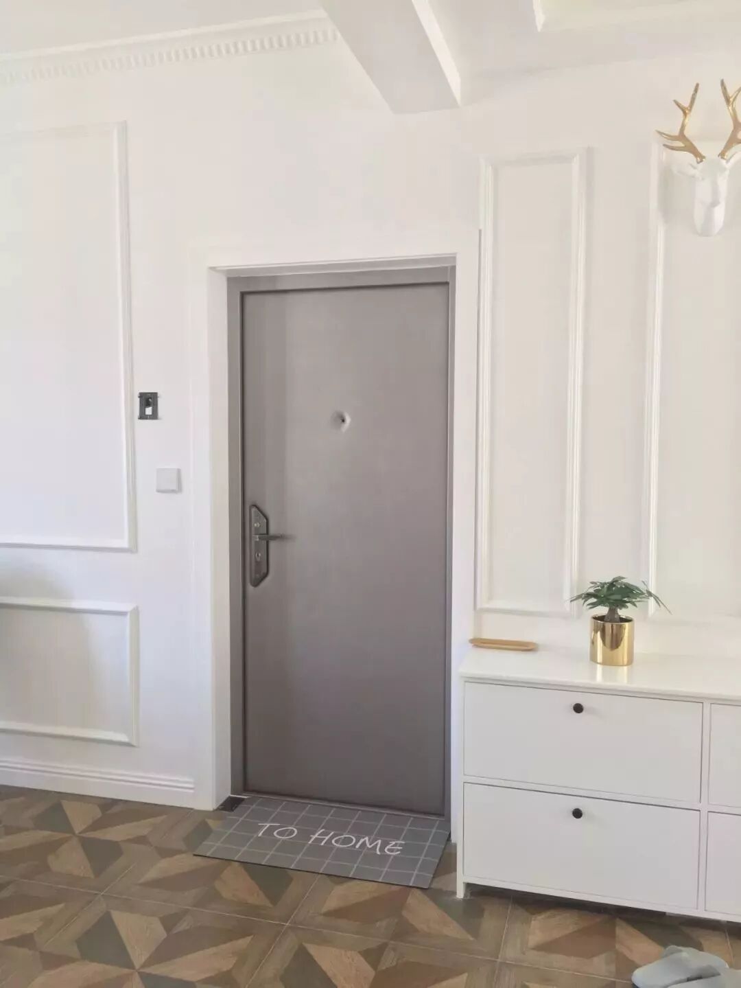 入户门是回家后的第一道门,这扇门基本开发商都会预装的,如果不是因为特别丑或则装修预算特别充足的话,一般是建议保留的,毕竟这个门对整体装修搭配的效果影响不会多大。