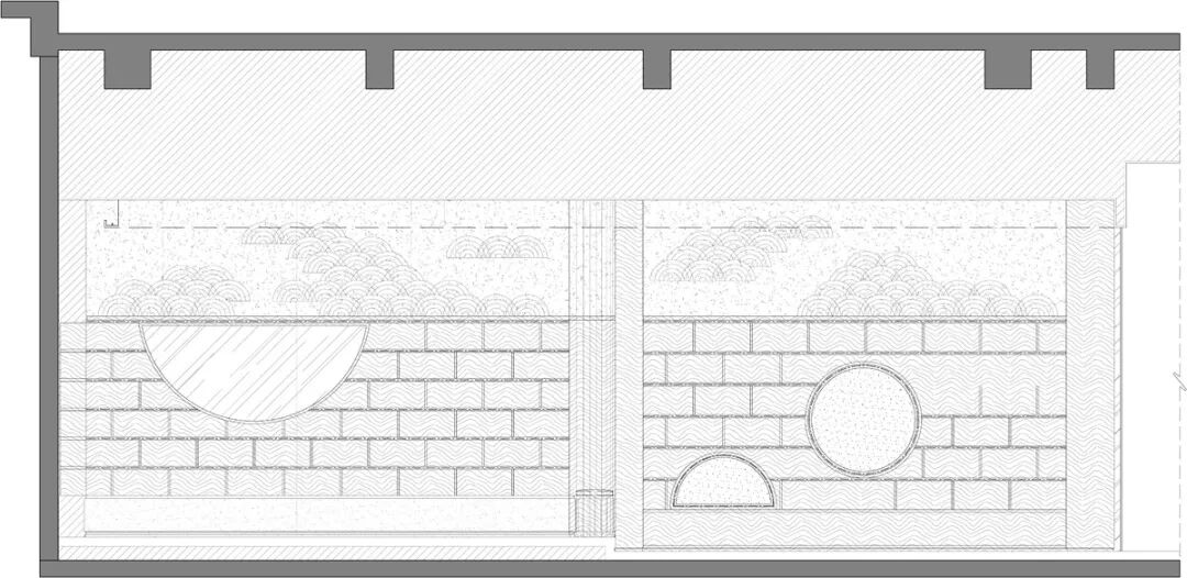 下沉庭院信步入口,层层叠浪圆形围合,雨水滴落,荡漾开来,鱼儿游弋其间,氤氲着自由和欢愉