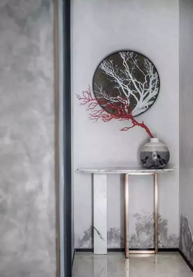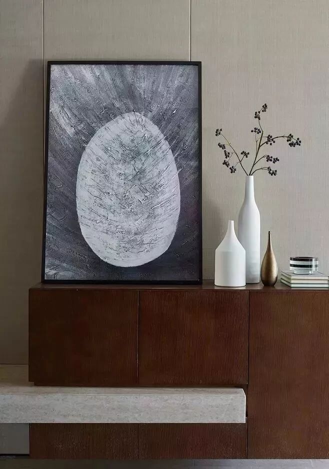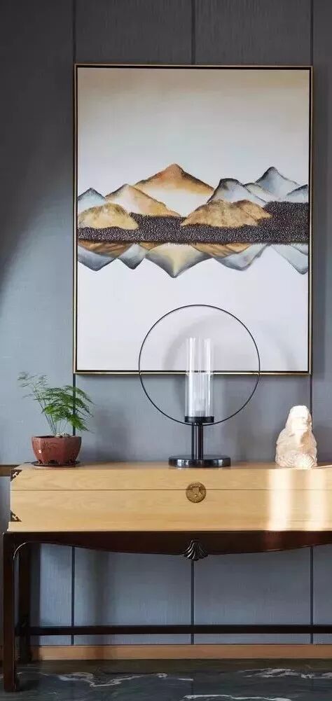 再搭配雅致的挂画、器物、禅意花瓶等,