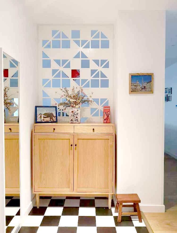 那么家里没有玄关的户型,要怎么补救?这个要分两种情况,如果进门空间比较紧凑,那就想方法放个鞋柜,实现收纳功能,如果进门空间充足,就可以设置一个隔断,实现玄关区的独立。