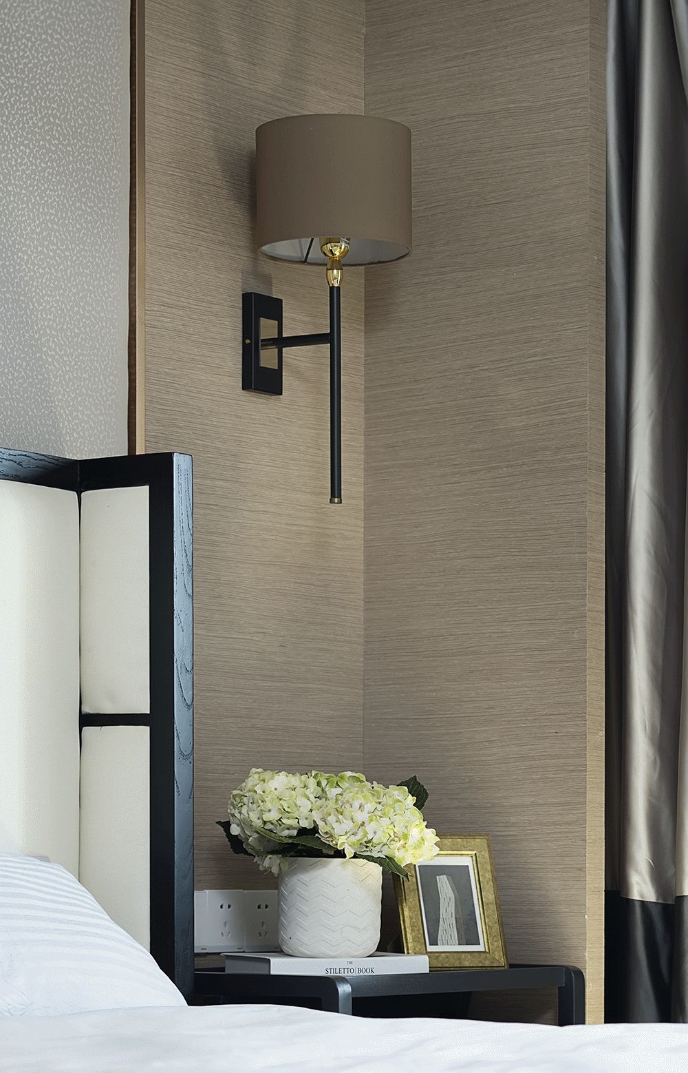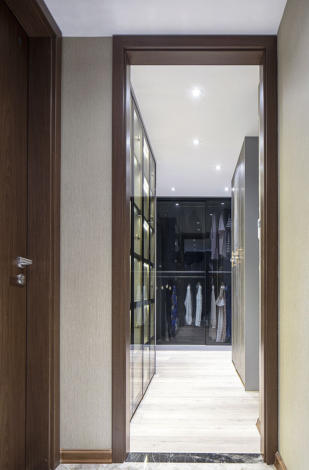 主卧气质沉静、优雅,还通过鞋帽柜和衣柜的设置,引出了一条通往步入式衣帽间的连贯动线,整个设计一气呵成,让空间回归到属性的本身。
