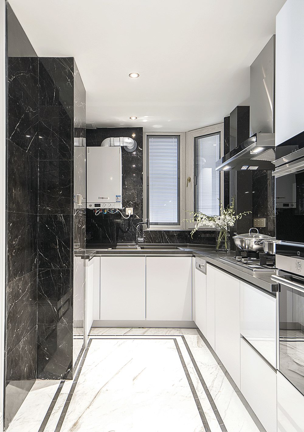中西厨房用一扇拉门加以区隔,西厨靠外,中厨靠里,这样的设计符合主人生活习惯,也有利于避免油烟的侵袭。