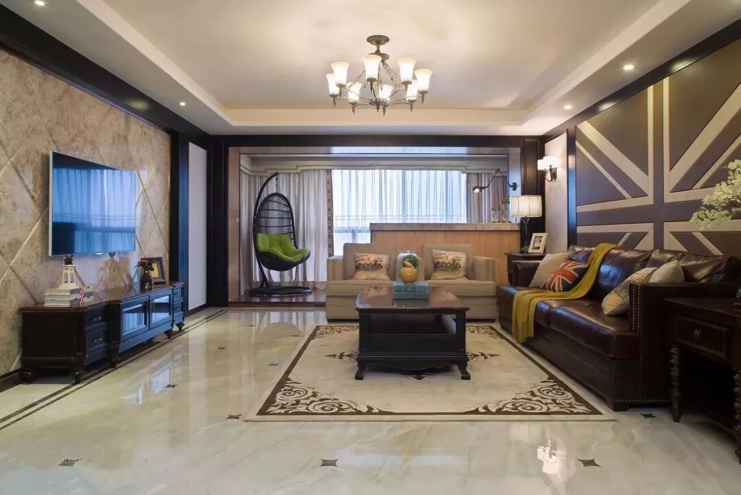 客厅空间一般是家里最大的空间,这里如果通铺一种地砖的话就会略显单调,如果做个拼花造型的话,整个空间会显得更加有层次、更加显得高档次。