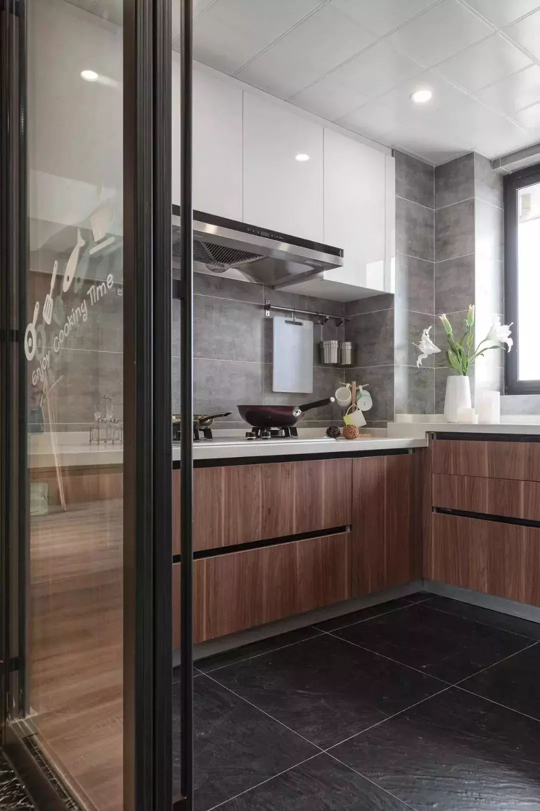 提升厨房的使用体验让做饭变得更轻松厨房操作台采用高低台处理棕色的原木搭配白色的台面自然的纯净复古的美好瓷质