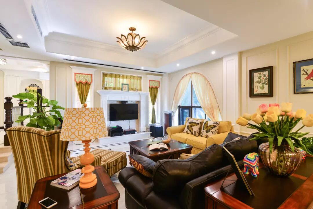 硬装就采用包容性极强的美式,用大线条、大块面、大白色为底,穿插中性调子的有色色块。