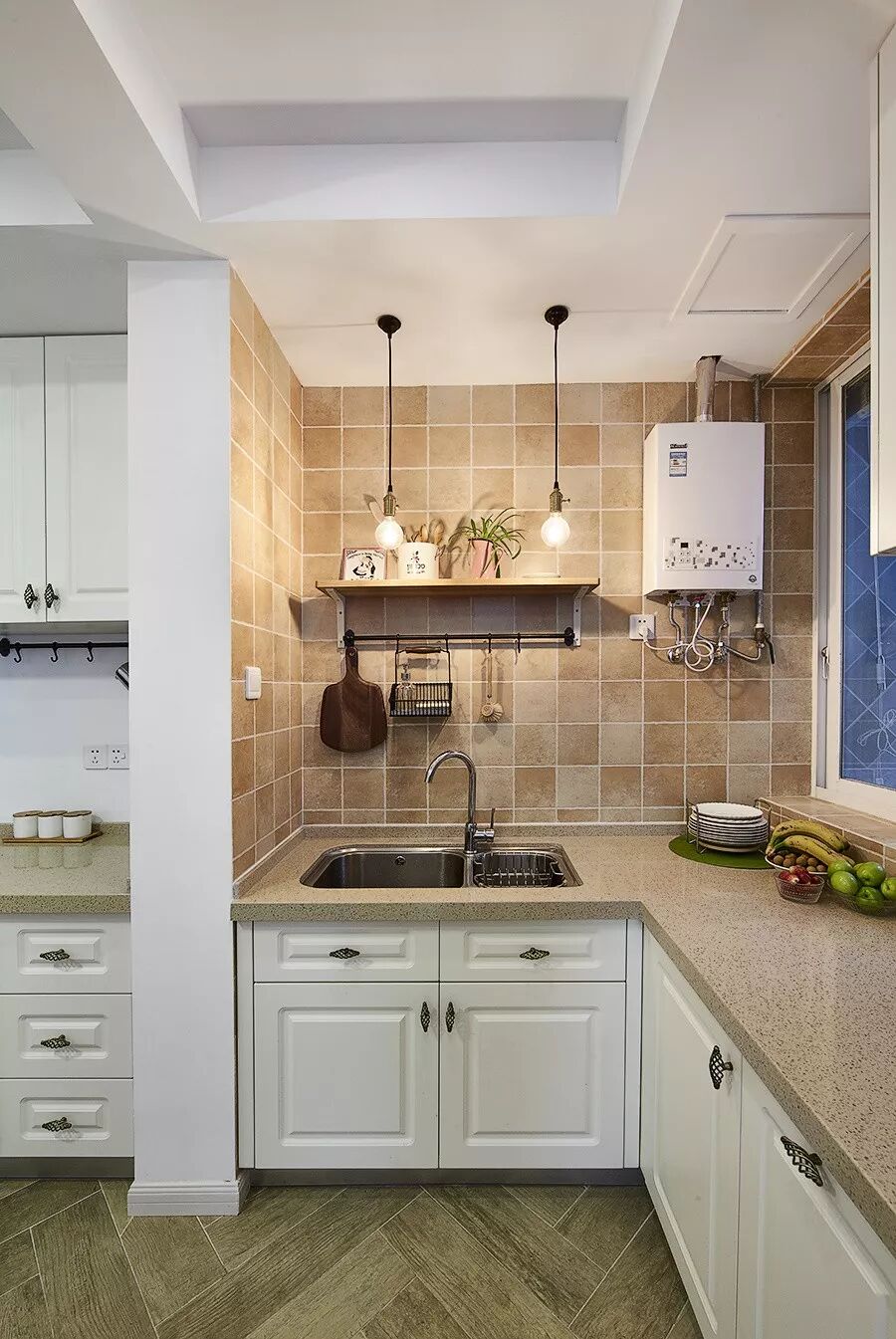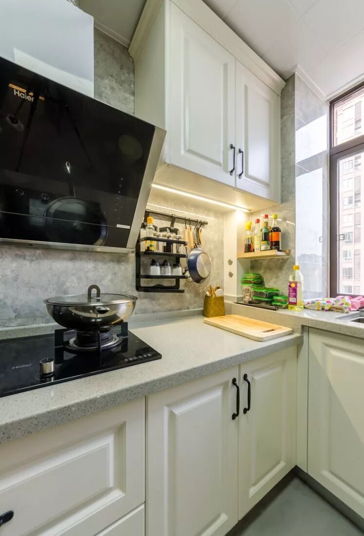 19、这里是利用了户型,墙面加装一个小搁板作为切菜或者放材料的台面。
