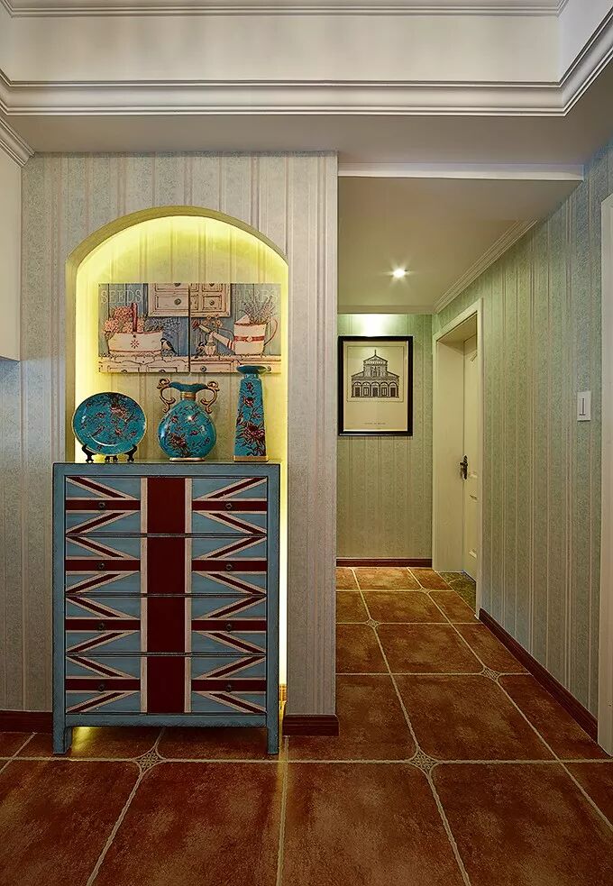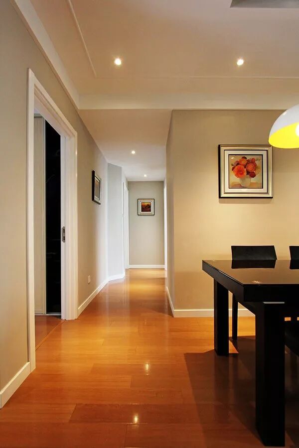 有的户型走廊尽头是房门,这时候可以选择在侧边的墙面挂画。