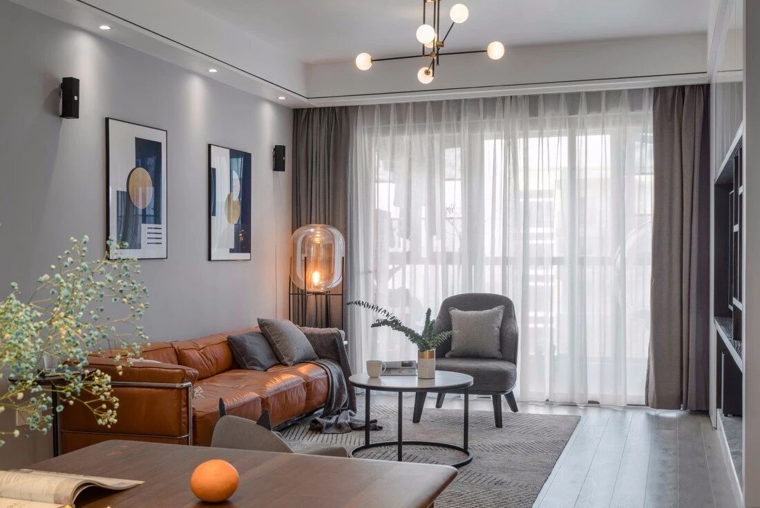 ▲简单利落的硬装线条,勾勒出客厅的简约开阔。落地窗采光效果也很好。