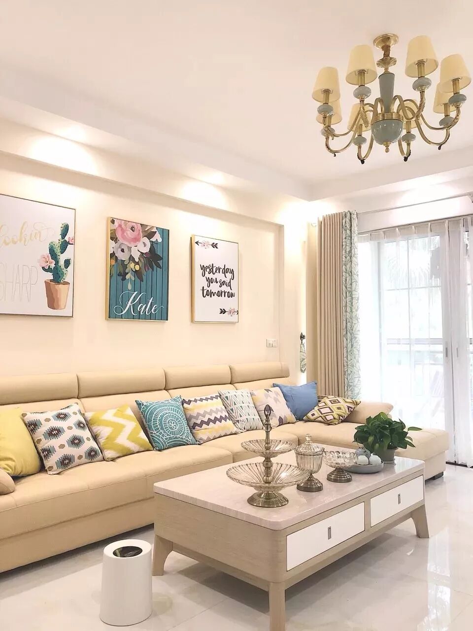 茶几,平时可以摆放小饰品、小物件,比如装饰花瓶、纸巾盒、遥控器、手机等常用的东西;当家里来客人了,这里则可