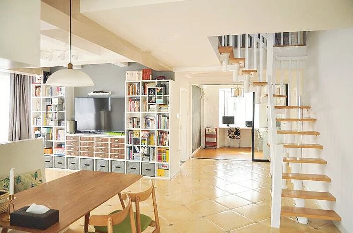 高低柜组合让收纳分类、展示收纳都灵活可控,后期可以根据自己的生活情况变化布置,改变家具位置。而且柜子之间错落的高度形成的动线,能让墙面层次更加丰富。