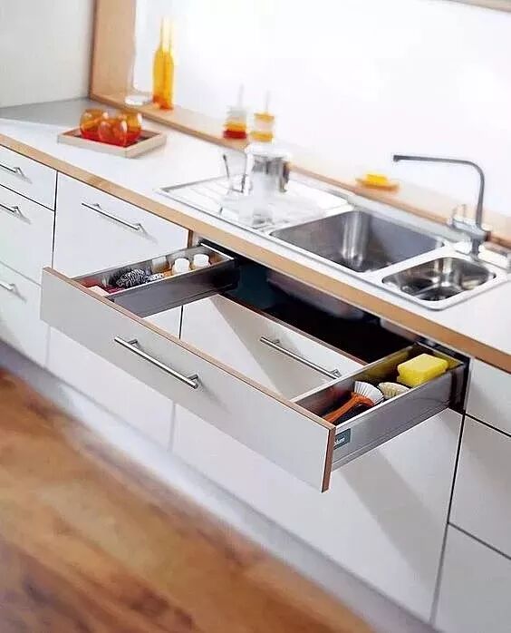 除了以上常见的,厨房的拉篮还有着很多的收纳可能性,各位可以根据自家的实际需求来搭配设计!
