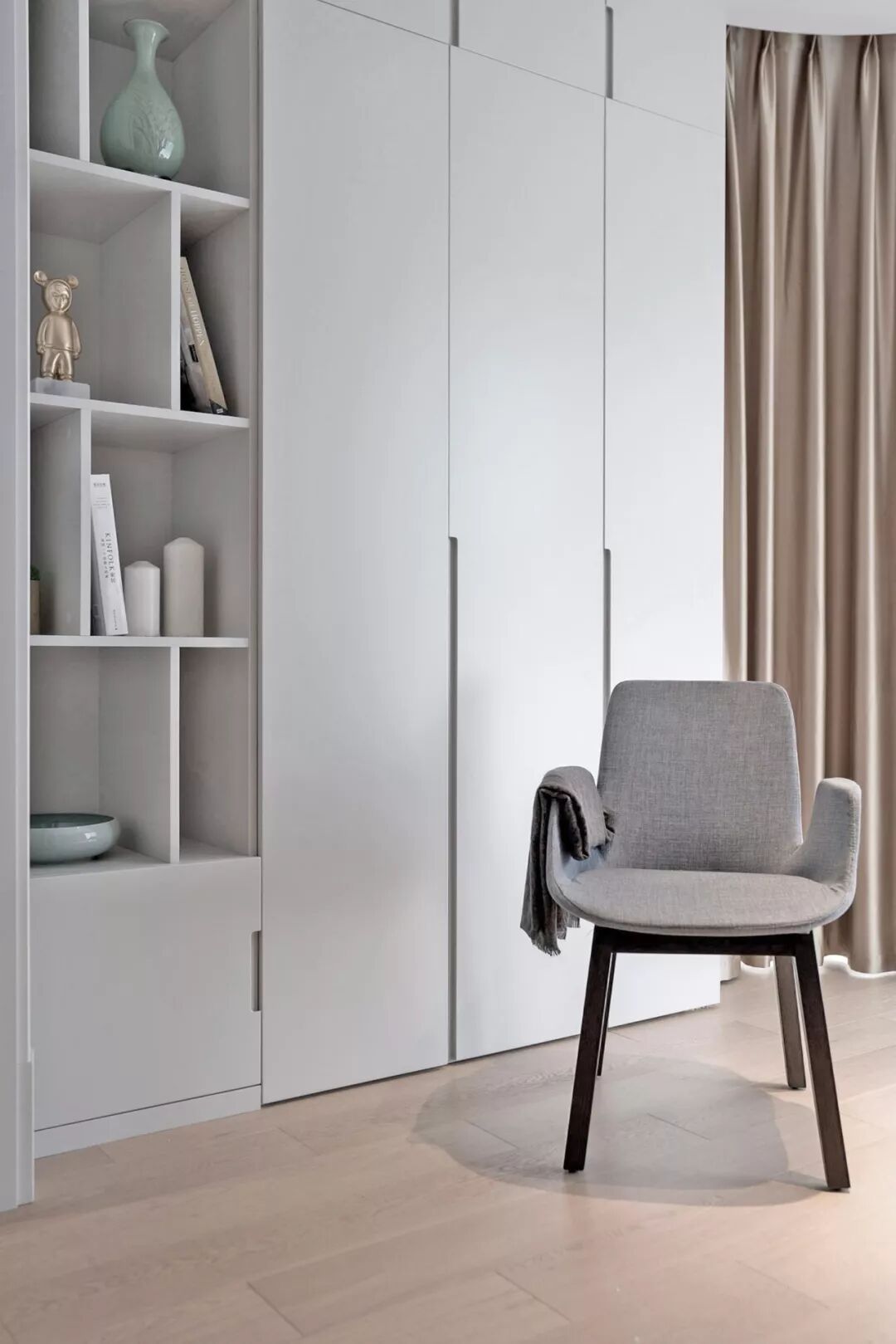 比较耐用简洁的设计是在柜门上的侧边做一个凹槽,这样就可以不需要拉手就实现开启柜门了,不过比起直接的拉手,这样开柜门需要一定时间去适应,适应后你会发现这样简洁的设计,也是非常方便的。