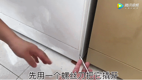 还有的洗衣机下方并没有明显的方孔,是不是就没有过滤器装置呢?并不是哦,有些洗衣机的下方有一个明显的长方形块,用一把螺丝刀,放在侧面,稍微借力就可以把它撬开。