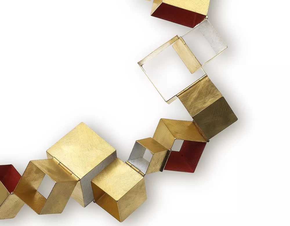 Babetto以立方体的几何形状为出发点,通过改变立方体的大小和颜色创作出了一条和谐的项链。它就像是一副动态的画卷,不停地沿着线变换着。但它也拥有了极简的美感。