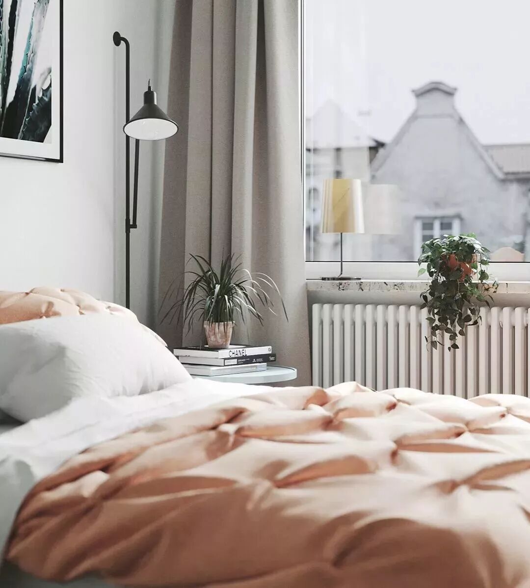 卧室的话,通常就是床头侧边或则靠窗位置的墙面上,作为休息睡眠的空间,暖气片在这个空间主要考虑的是哪个位置挂得下。