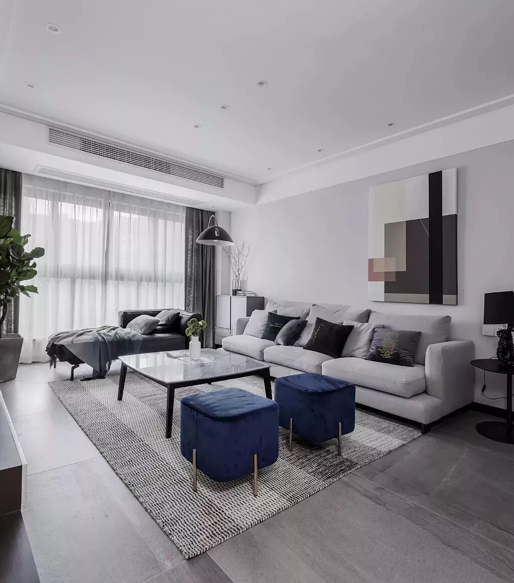 单单就客厅来说,中央空调比较适合安装在沙发墙的上方或则是靠窗/走廊的侧边,这样不会影响电视墙的整体设计,而且出风口也不会对着人直吹,整体舒适性要比较好。