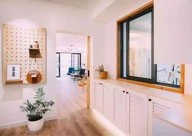 在留空区域安装几个挂钩,外套、帽子、包包等都有了合适的藏身之处,进出门的时候就再也不用跑到别的房间,轻松省事多了。