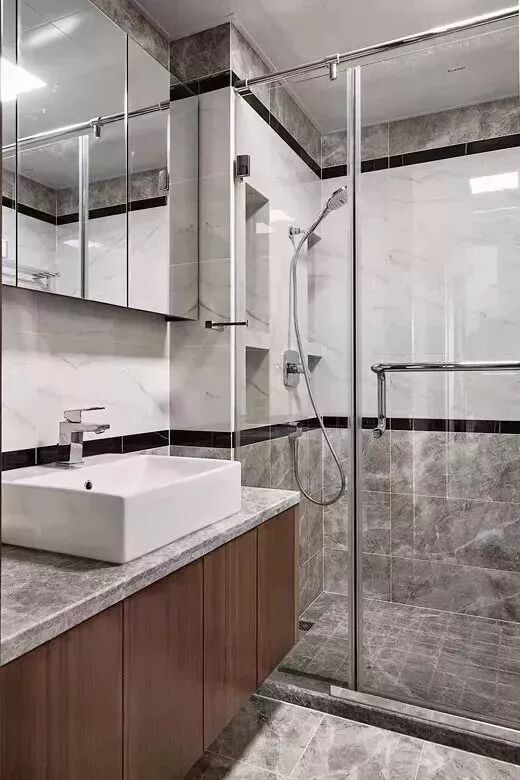 如果卫生间实在很小,那只能用浴帘干湿分离了。在电视剧里经常会看到这种帘子式的隔断淋浴间。好处是能保证卫生间的开放性和明亮感。比起之前提到的玻璃式隔断,帘子换起风格来,更随心所欲。