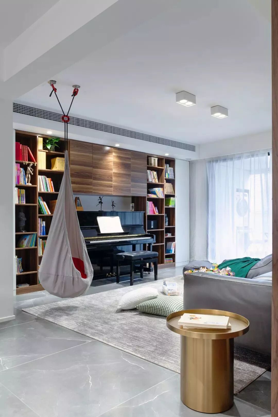 对于8090后的刚需来说,现在家里的孩子正好还小,他们需要的是一个宽敞的活动空间,可以在这里尽情地玩耍、游戏,而家长也可以陪伴着孩子一起度过难忘的童年时光,所以把客厅装成儿童互动区,也是一种非常棒的方案。