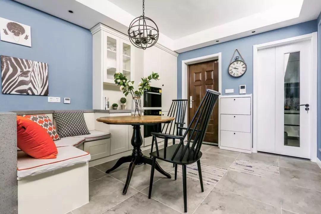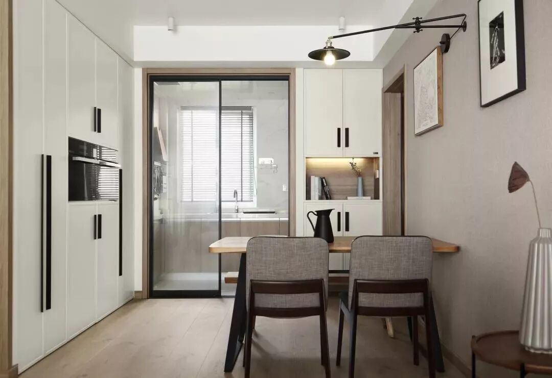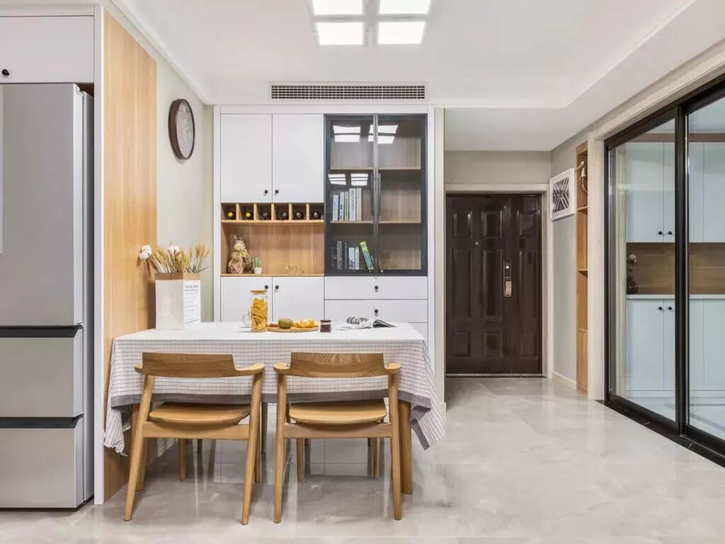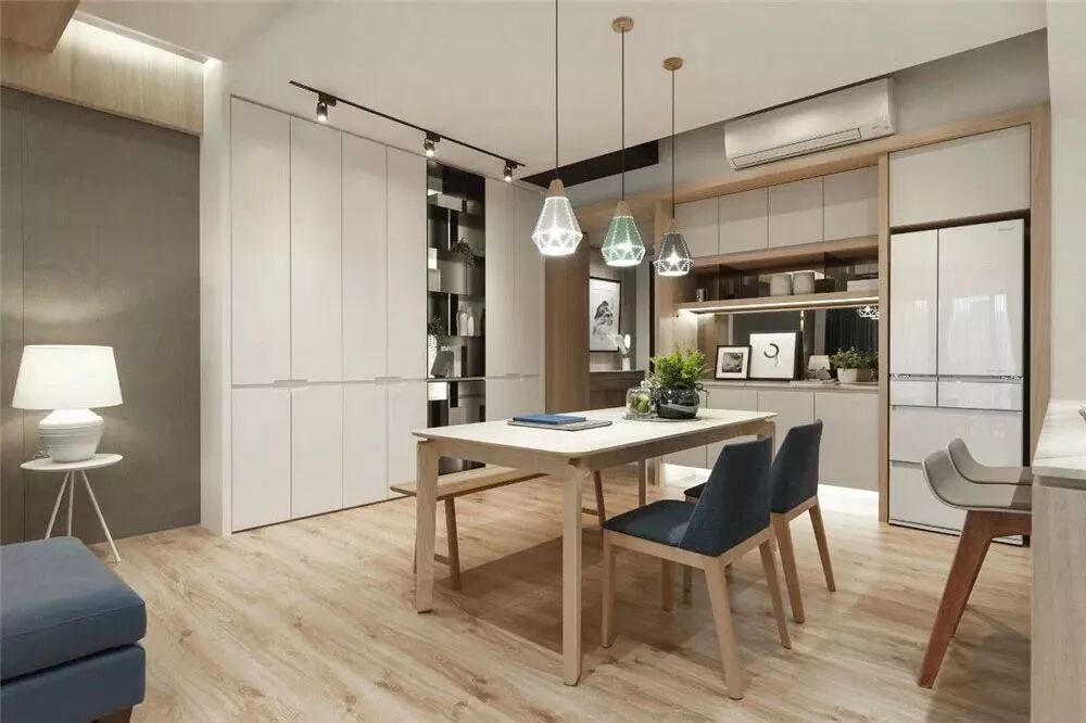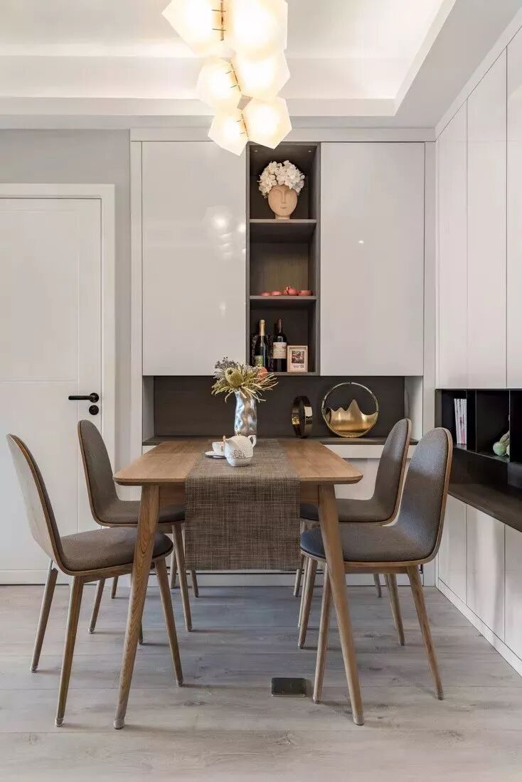 ②餐台辅助:必要的时候,也可以把餐边柜作为餐台的收纳辅助,电饭煲、水壶之类的可以放在餐边柜上,保持餐桌的简洁;