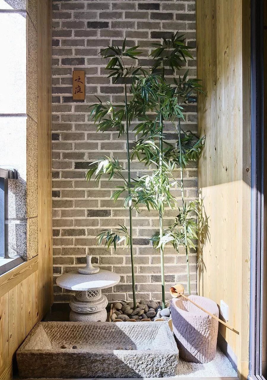 阳台铺设防腐木,另一侧是洗衣区。男主人爱在此摆弄山水小景。生活在都市森林中,自有心中一片天地。