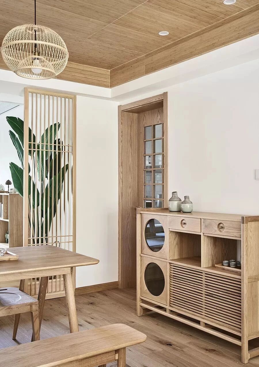 今天推荐是一套面积为130平米的日式风格三居,白色和大量原木的搭配,营造出自然朴实的空间氛围。藤、麻还有竹等天然搭配的搭配使用,贴近自然,清新淡雅,且韵含禅意。