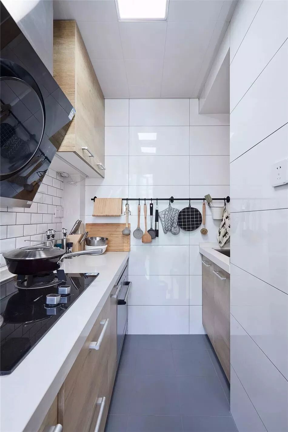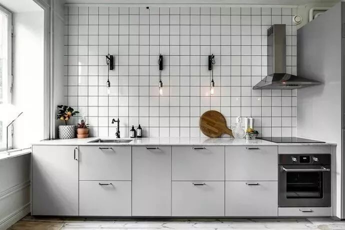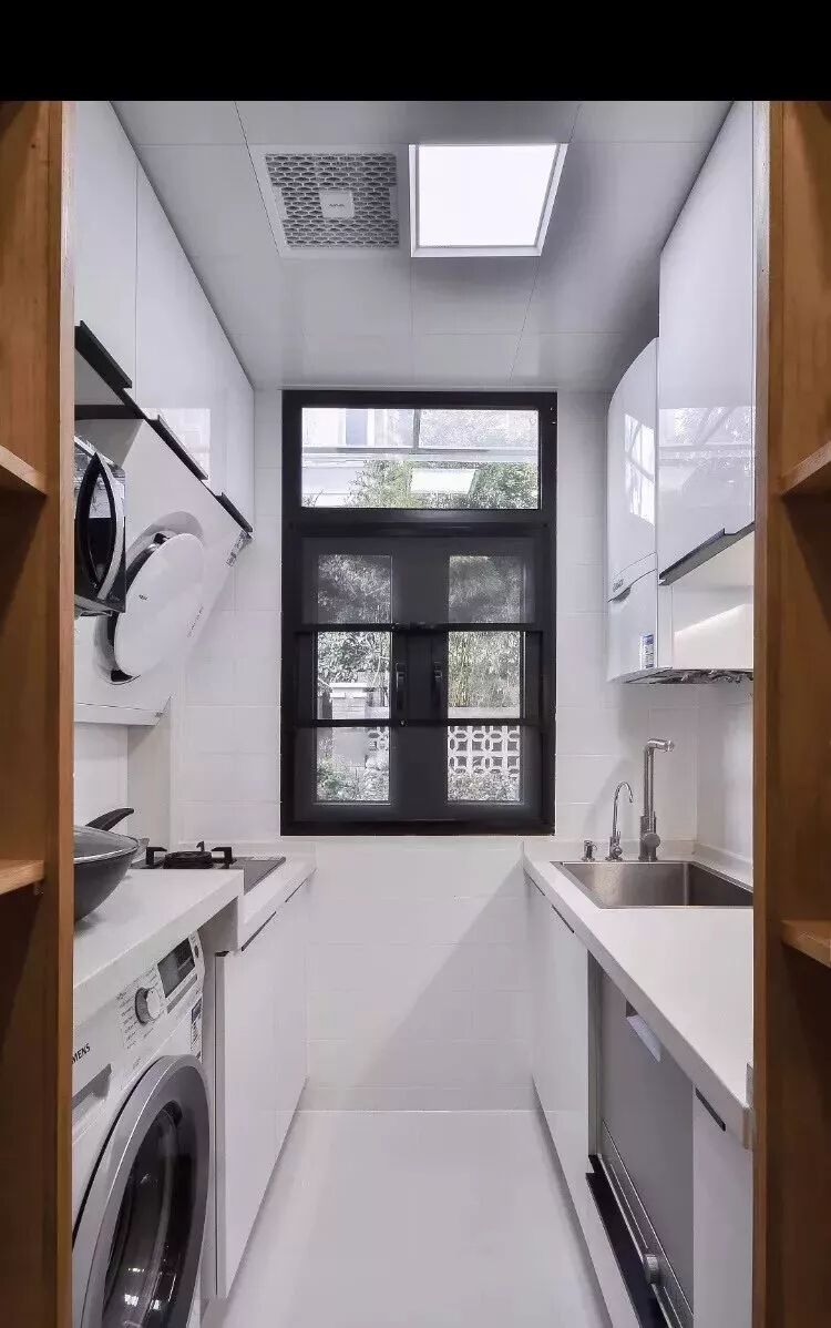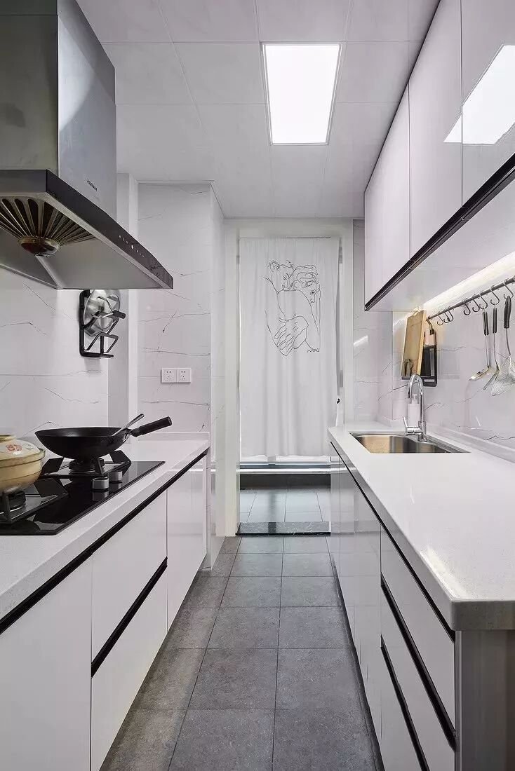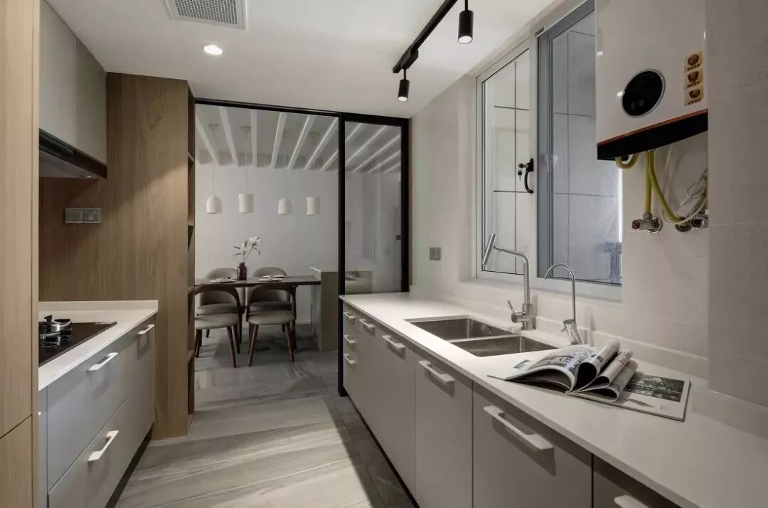 一字形的厨房,常见于以下情况:小面积公寓的过道式厨房、狭长且带有阳台的厨房、面积较小的厨房,一字形的厨房实用性都较低,通常都是无奈的选择,要么是小,操作台面空间不足,要么是动线较长,做饭需要来回走动多。