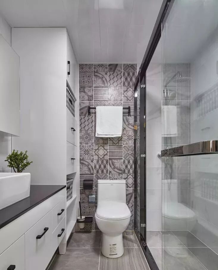还有一种便是在卫生间的地面上铺贴花砖,营造出一种“低头是复古,抬头是时尚”的视觉效果,空间格调骤然提升。