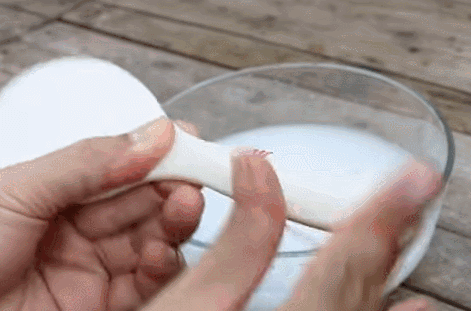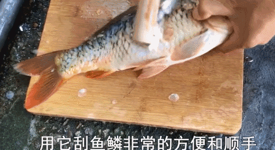 等热熔胶凝固后,就可以用来刮鱼鳞啦,鱼鳞一下就刮下来了,赶快试试!