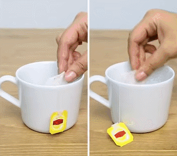 用开水泡茶叶包时,茶叶包经常会乱跑到烫手的茶水里,这时只用一根皮筋,就可以固定住。