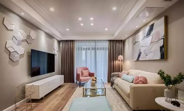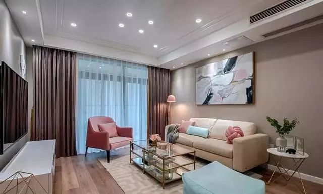 客厅房间的窗帘的颜色,也是参考了客厅整体的色调来搭配的,整体看起来,很融洽。