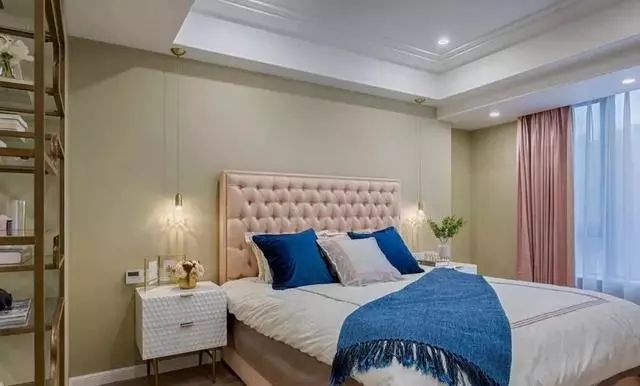 主卧室的空间布置的很亮丽,稍微暖色的墙面,然后使用粉色系的窗帘,如果是少女系的话,相信你一定会喜欢的。