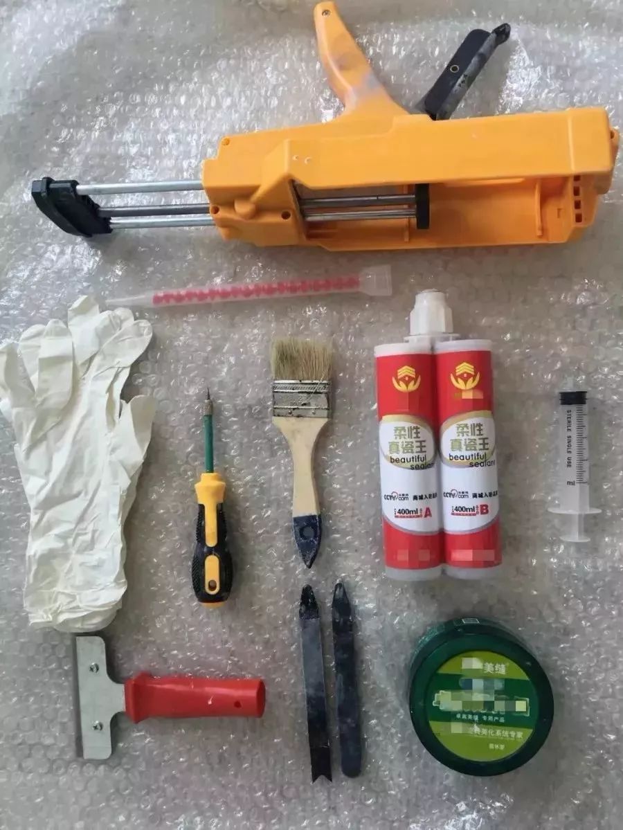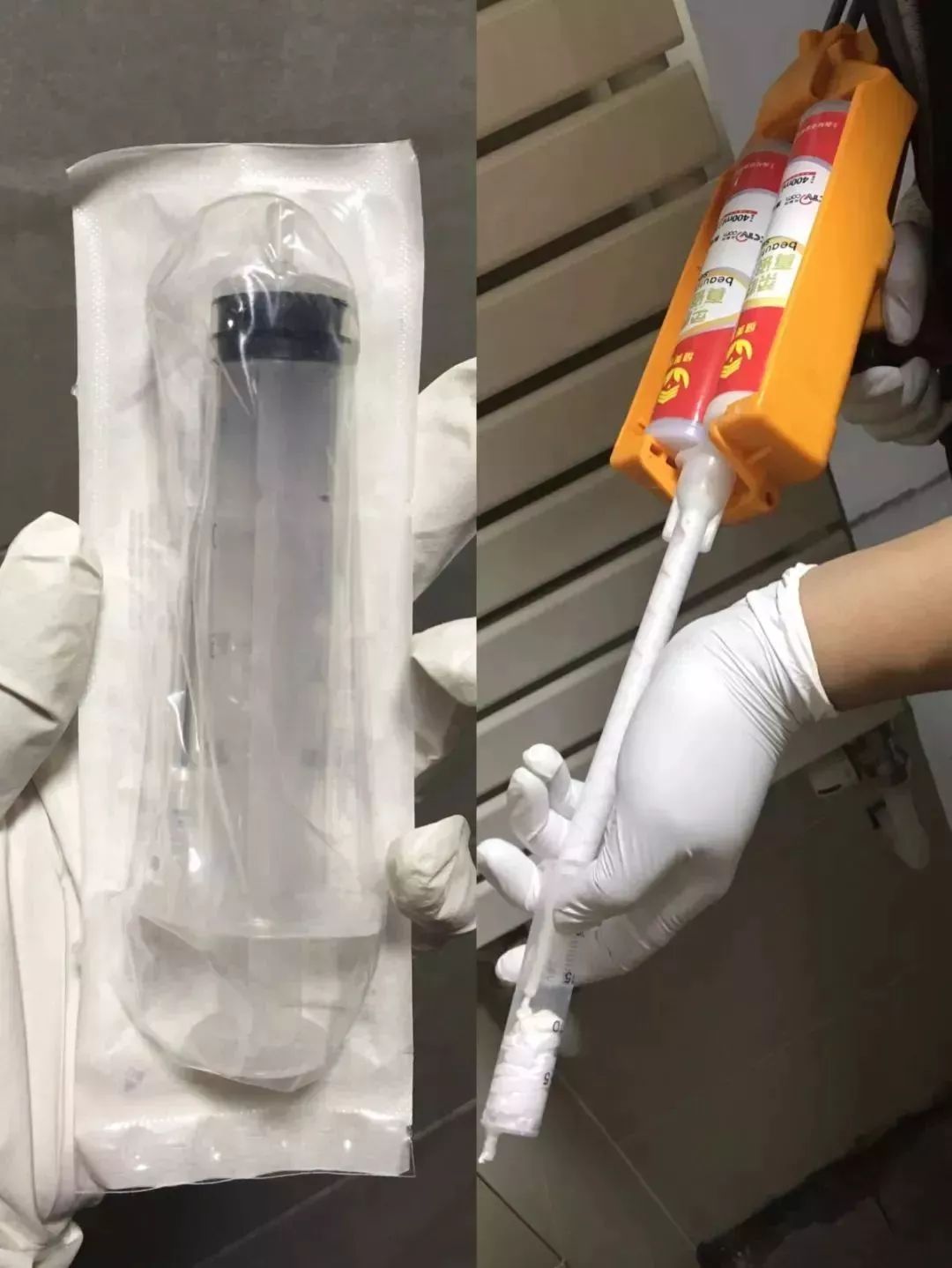 可以把a、b混合管的头部去掉一部分,这样方便挤进针管不费力。接下来把美缝剂打到针管里就可以施工了。会有同学说多此一举,那我会告诉你这是直接扛枪上墙胳膊疼了2天后的结论。