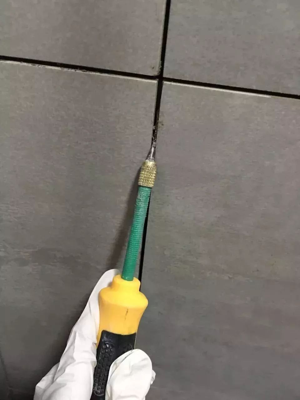 先把瓷砖清理干净,可以用任意能伸进缝隙的物品清理。注意看缝隙里有没有刀片,有的铺贴师傅会把刀片忘了拿掉.有一些小卡子时间长了弄不出来的话,就把它按进去。