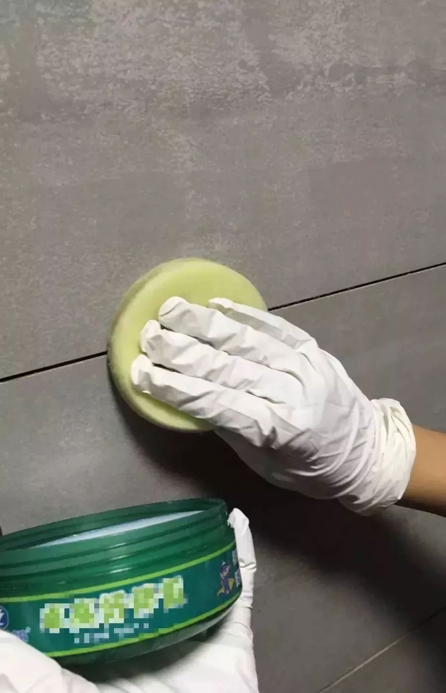 美纹膏涂抹在边缝上,不用太多,以防弄到槽里。全程必须戴手套,美缝剂弄到手上你哭都没用,最好穿一个自己最不喜欢的衣服。