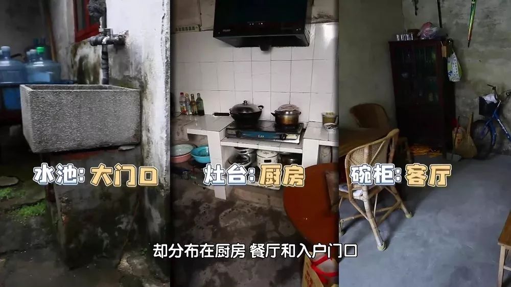 改造前,做饭要在门口的水池、客厅的碗柜,还有厨房的灶台间来回折腾,动线非常不合理。