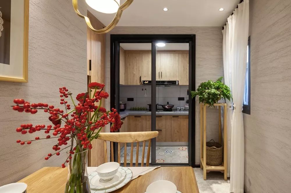 改造后,设计师将天井部分纳入了屋内,便成了用餐区域,这一设计,使得整间房子形成了一个整体,不仅房子的有效面积得以增加,功能区也更加完备。