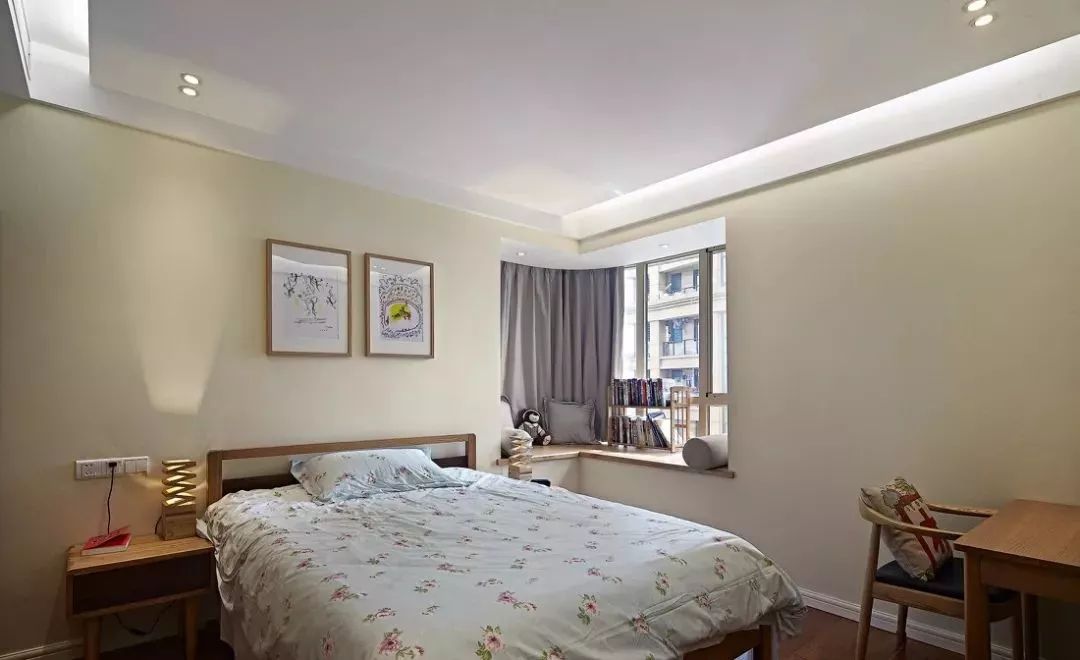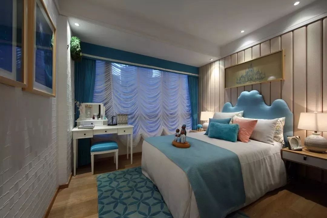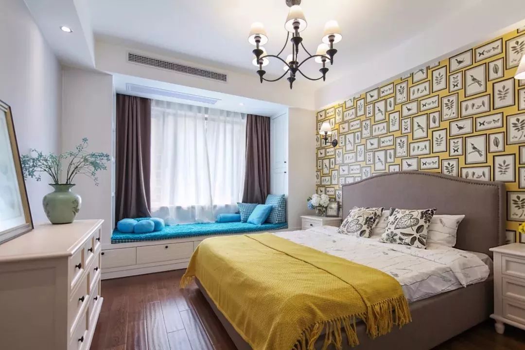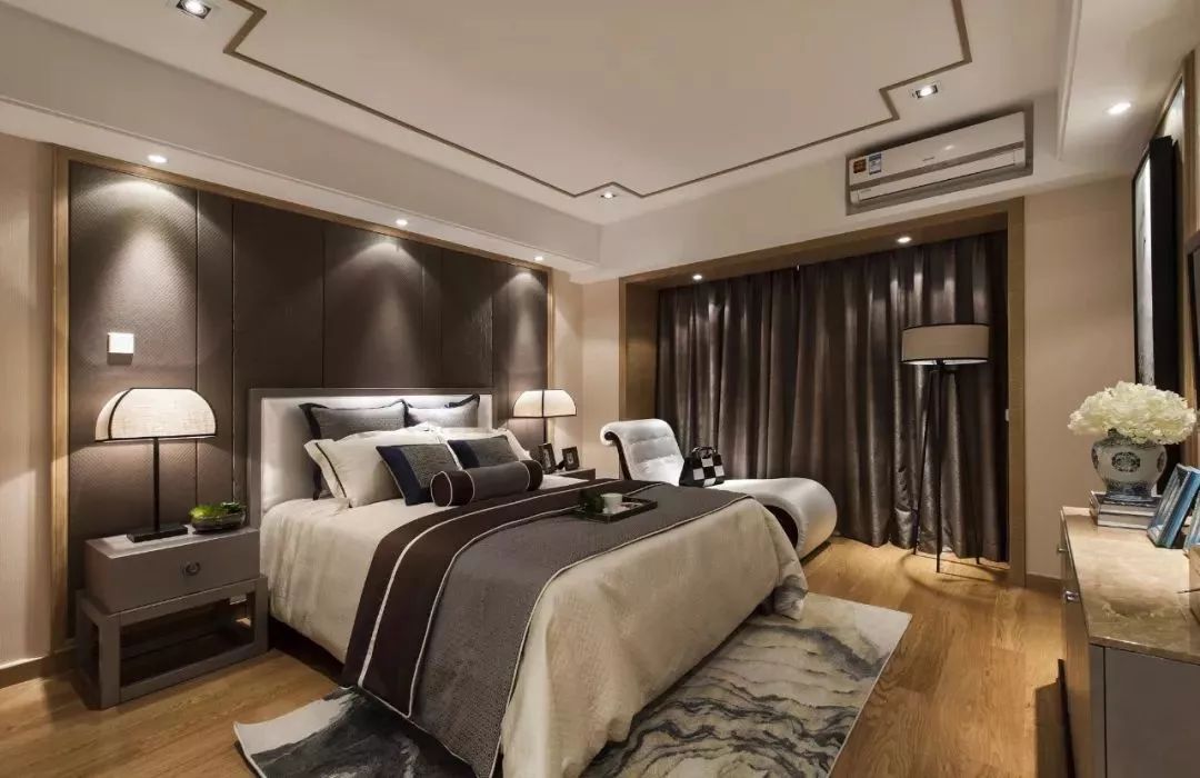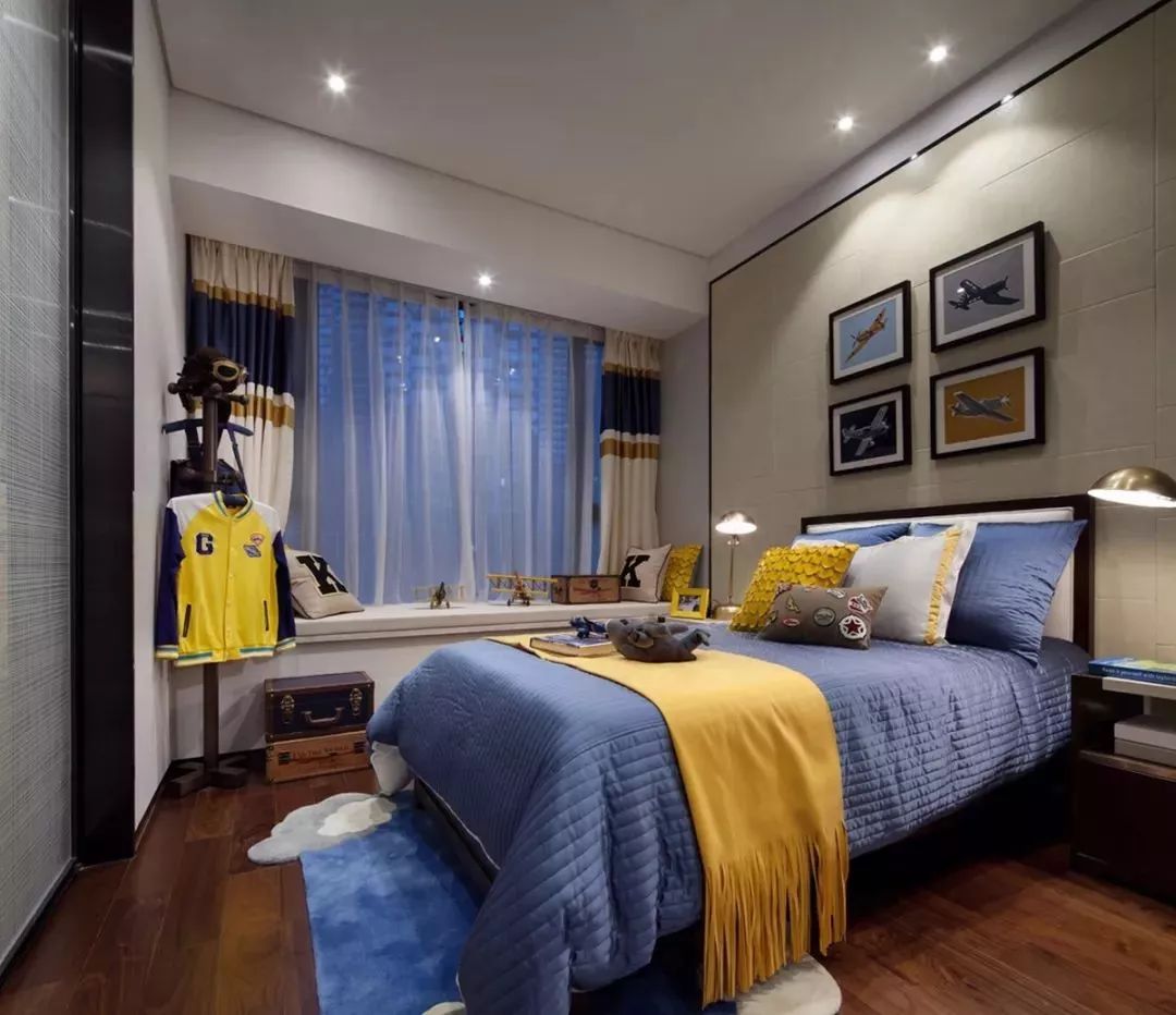 美式一般是现代美式风格,这种风格的卧室窗帘搭配,也是以素色为主,整体比较优雅精致。