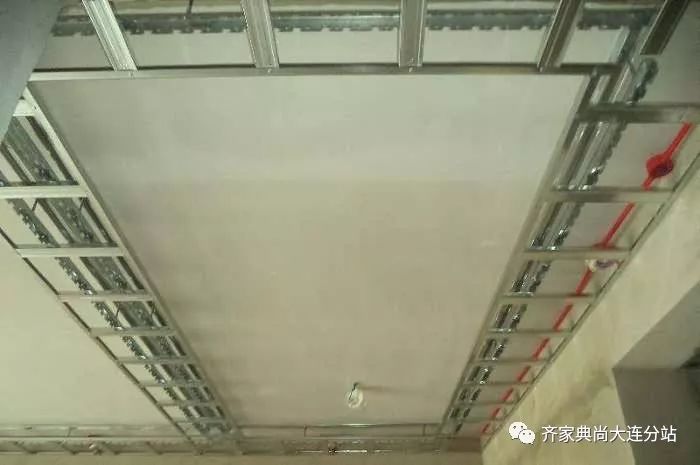 常用的纸面石膏板吊顶的吊顶龙骨应当事先涂刷过防火涂料,不少于3遍,晾干备用。