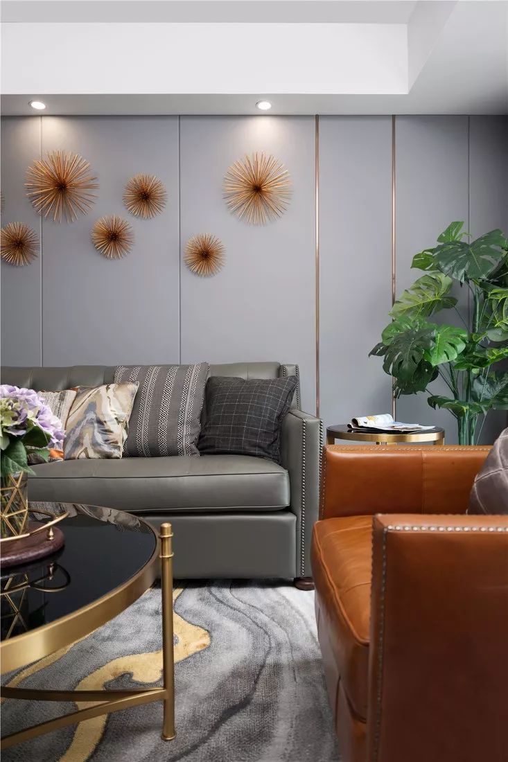 关注微信公众号:jia-fszx,每天和您分享软装搭配技巧、各种风格户型的装修案例、搭配设计知识等!面积:143㎡空间:四居风格:美式在客厅区域,设计师选择高级灰作为主色调,为整个空间铺垫低调优雅的基调。加上少许金色作为点缀,让整个空间更显精致。沙发背景的墙饰超强的线条感,让空间不乏优雅与时尚的品