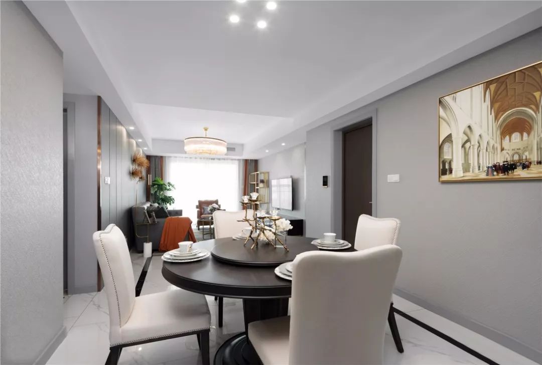 餐厅,设计师选用圆桌,寓意一家人团团圆圆。