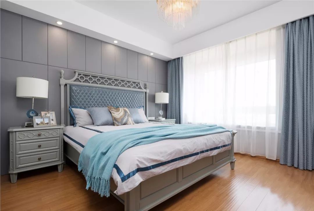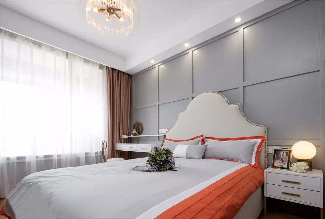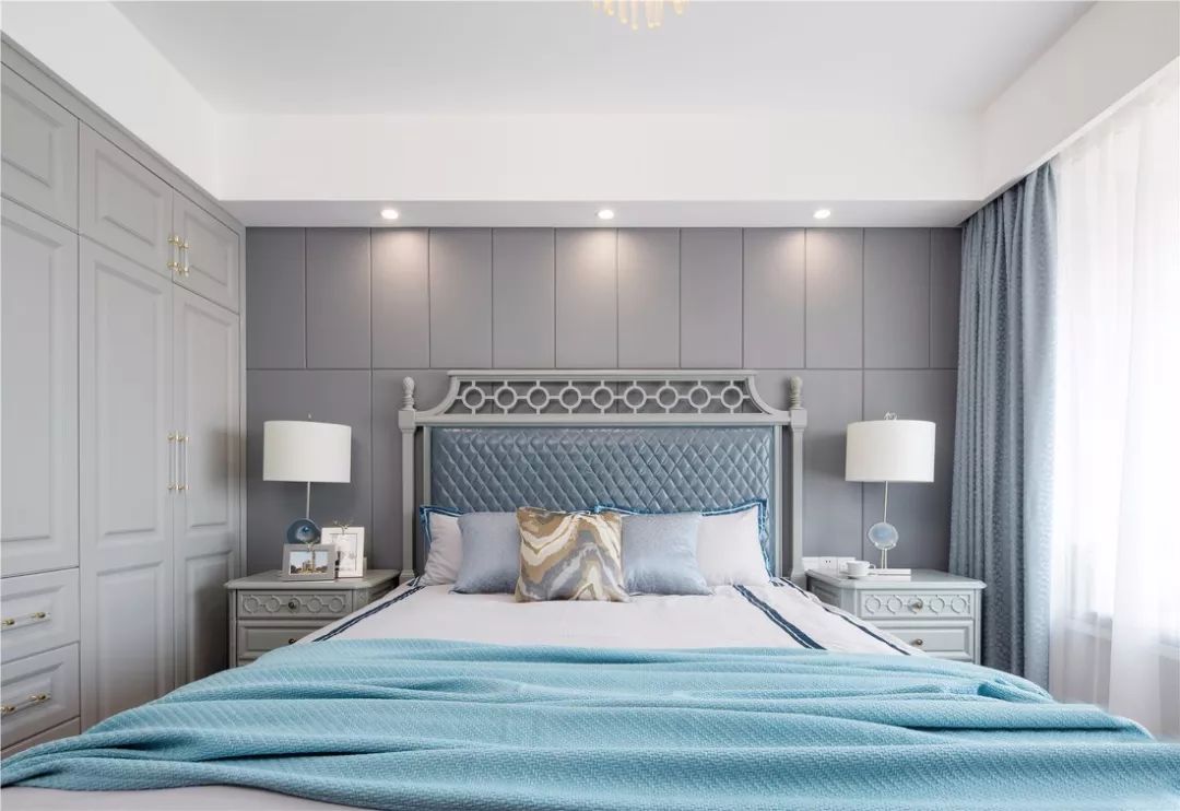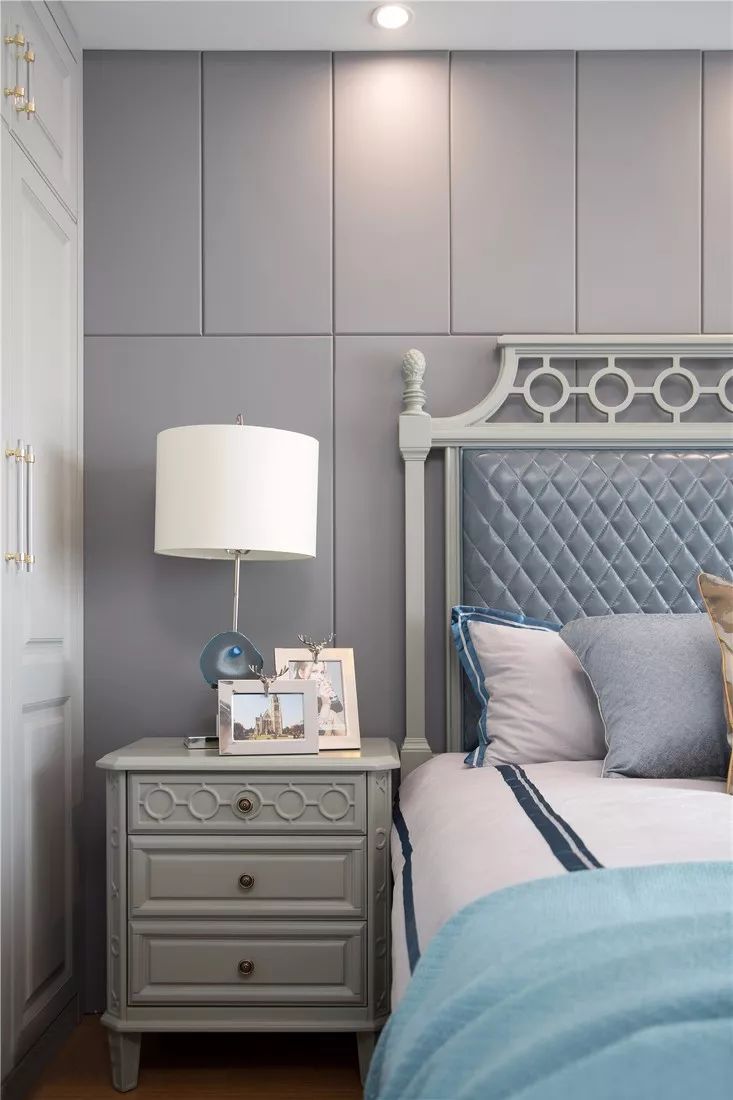美式造型大床的外在精致与内在优雅浑然一体,衣柜通顶的设计,既避免了顶部留出尴尬的空间积尘,又提供了充足的衣物收纳空间。